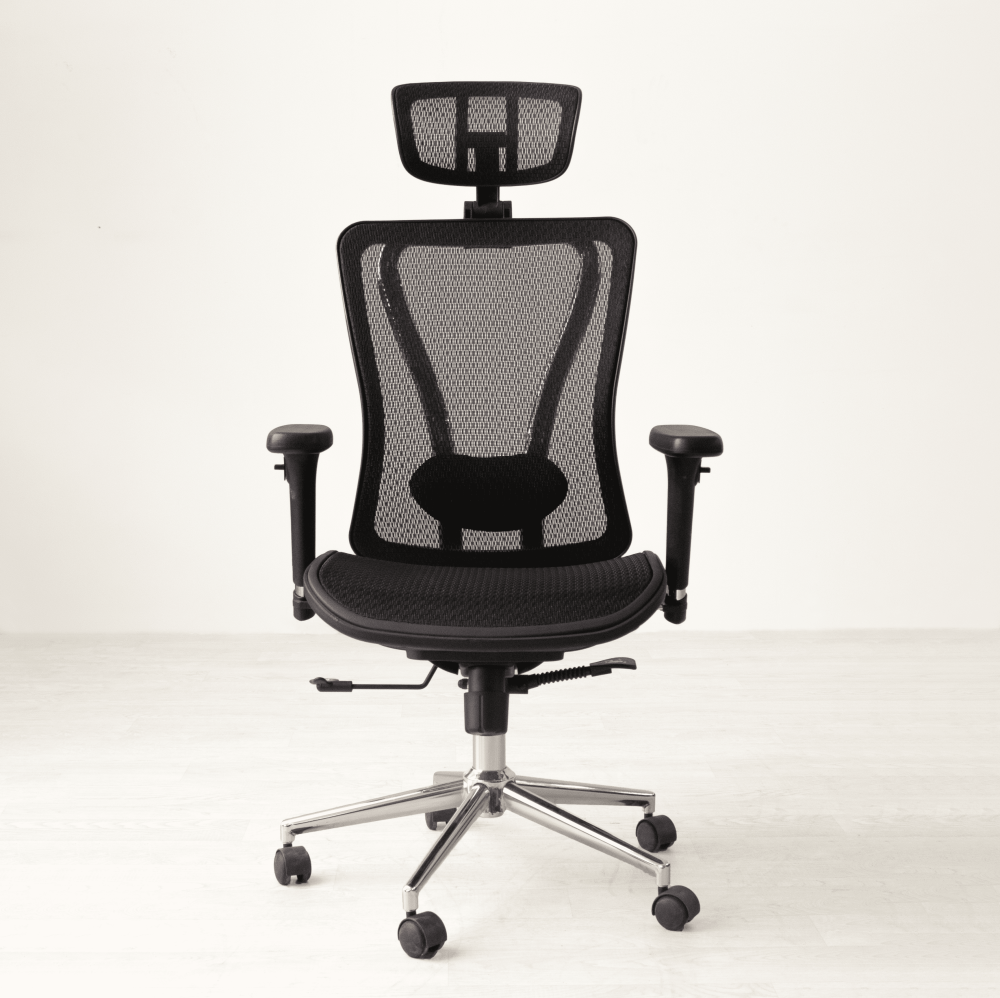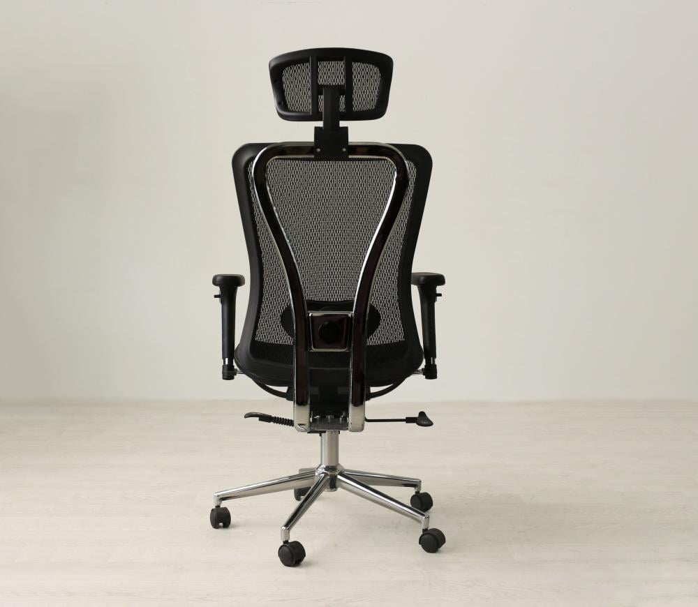 يتميز بتصميم مثقب من الشبك يوفر تهوية جيدة للظهر، بالإضافة إلى ظهر مرتفع يوفر دعمًا إضافيًا للرقبة والظهر.